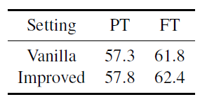 - 사전학습/추가학습 가릴 것 없이 개선된 손실함수를 사용하는 것이 가장 좋았음.