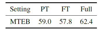 - 다양한 태스크 벤치마크 데이터셋 MTEB에 평가 결과, GTE_large는 새로운 SOTA로 자리매김하여 다양한 태스크에도 사용 가능한 임베딩 모델을 제시함.